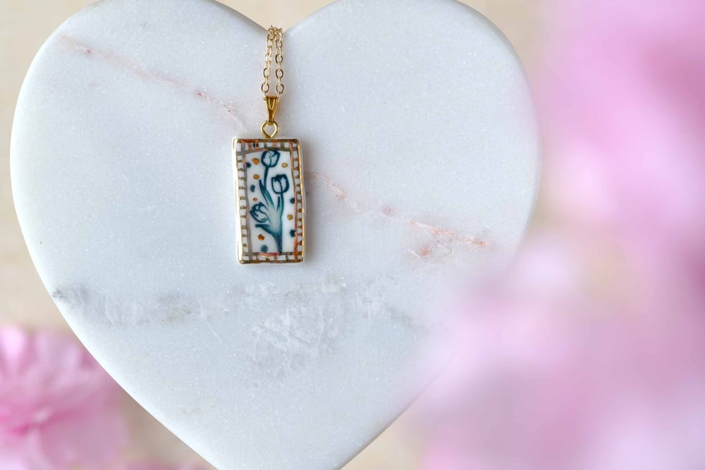 Tulip flower pendant with gold lustre detail
